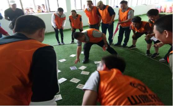 通過系列游戲?qū)胪卣估砟睿瑫r建立團隊、選舉隊長、編隊歌、取隊名、定隊訓(xùn)、繪隊旗、做團隊雕塑,做文化展示。隊員在精神整裝和團隊建立時充滿信心和激情的表現(xiàn),體現(xiàn)出青海物產(chǎn)汽貿(mào)團隊已整裝待發(fā)、破冰起航。