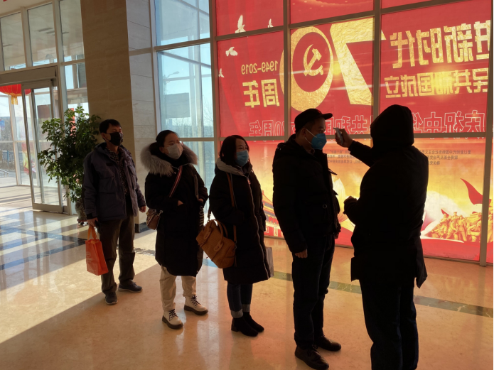 物產(chǎn)化工黨支部黨員堅守防控工作一線,做好體溫測量和消毒工作。?