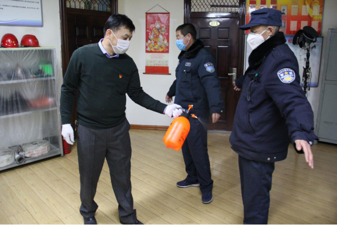 民爆公司黨支部黨員主動承擔(dān)起防控工作,在日常消毒,防控檢查,都能看到他們的身影。