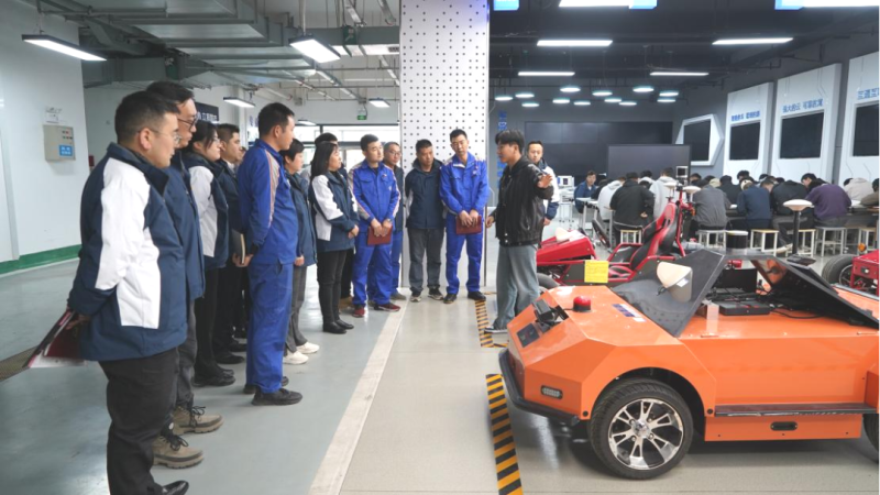 在參觀汽車專業(yè)實(shí)訓(xùn)中心時(shí),交通運(yùn)輸學(xué)院汽車系智慧互聯(lián)專業(yè)老師為支部黨員進(jìn)行了精彩的現(xiàn)場授課。大家積極請(qǐng)教,互動(dòng)交流,了解了智慧互聯(lián)交流與共享的新型模式,對(duì)生活和工作帶來便利和智能化體驗(yàn)等內(nèi)容。在場認(rèn)真聆聽的“物產(chǎn)工匠”石學(xué)林對(duì)近期將與高校老師組隊(duì)參加“西部陸海新通道建設(shè)全國引領(lǐng)性勞動(dòng)和技能競賽”,有了新的啟發(fā)。下一步,校企雙方將會(huì)對(duì)“優(yōu)服務(wù)、壯產(chǎn)業(yè)”技能競賽項(xiàng)目進(jìn)行深入的研究和探討,做到交流“不斷線”,學(xué)習(xí)“不停步”。